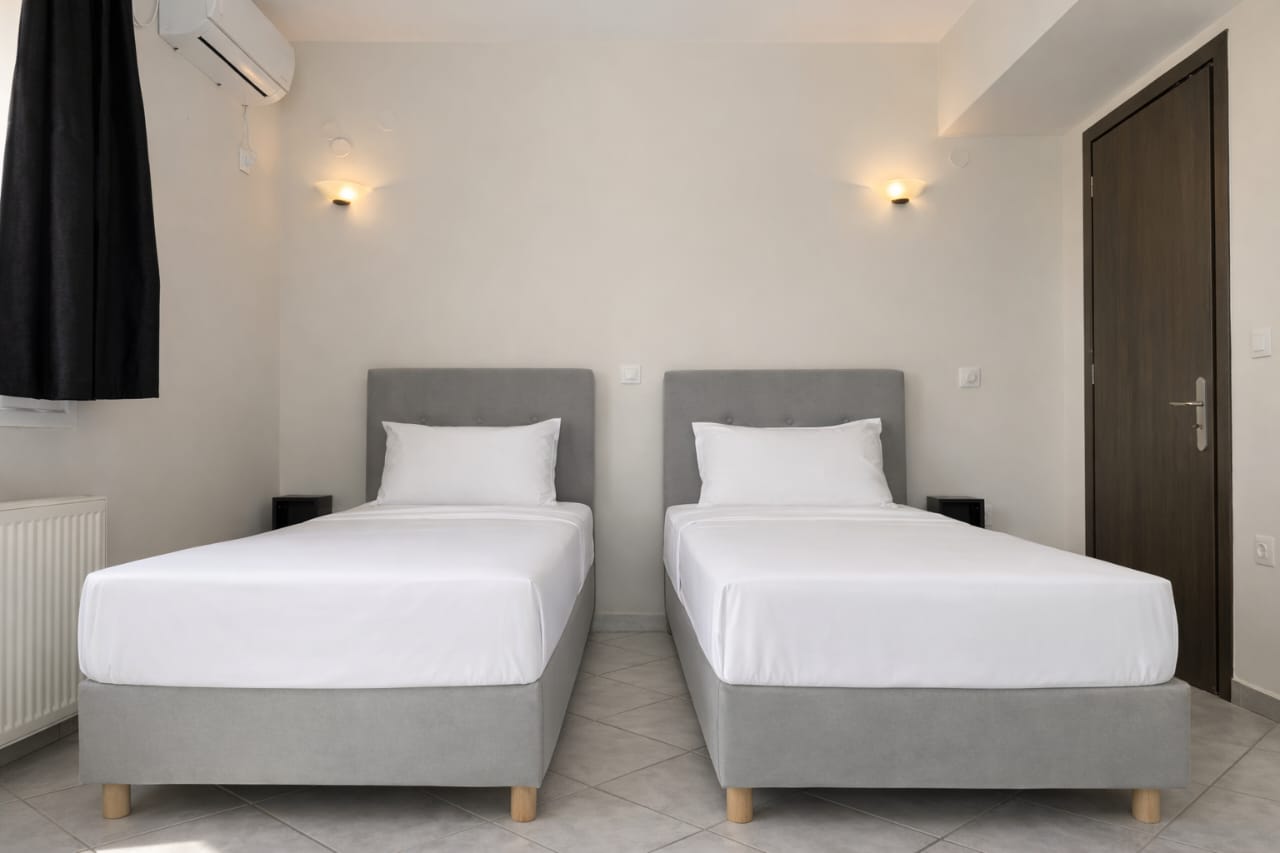 Ideally located in a quiet yet central area, the apartment is just 3 minutes from the city center, 2 minutes from the hospital, and 7 minutes from Makris Gialos beach.