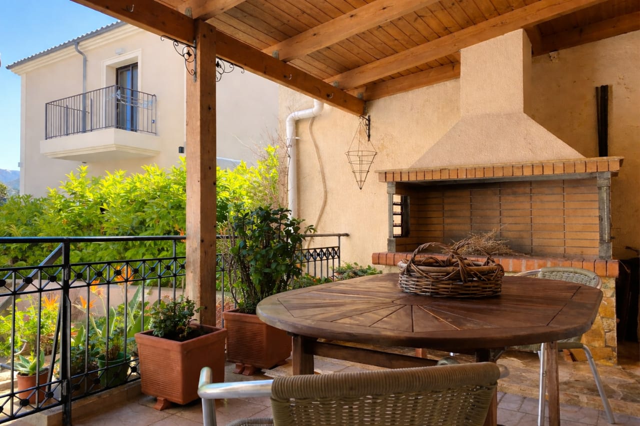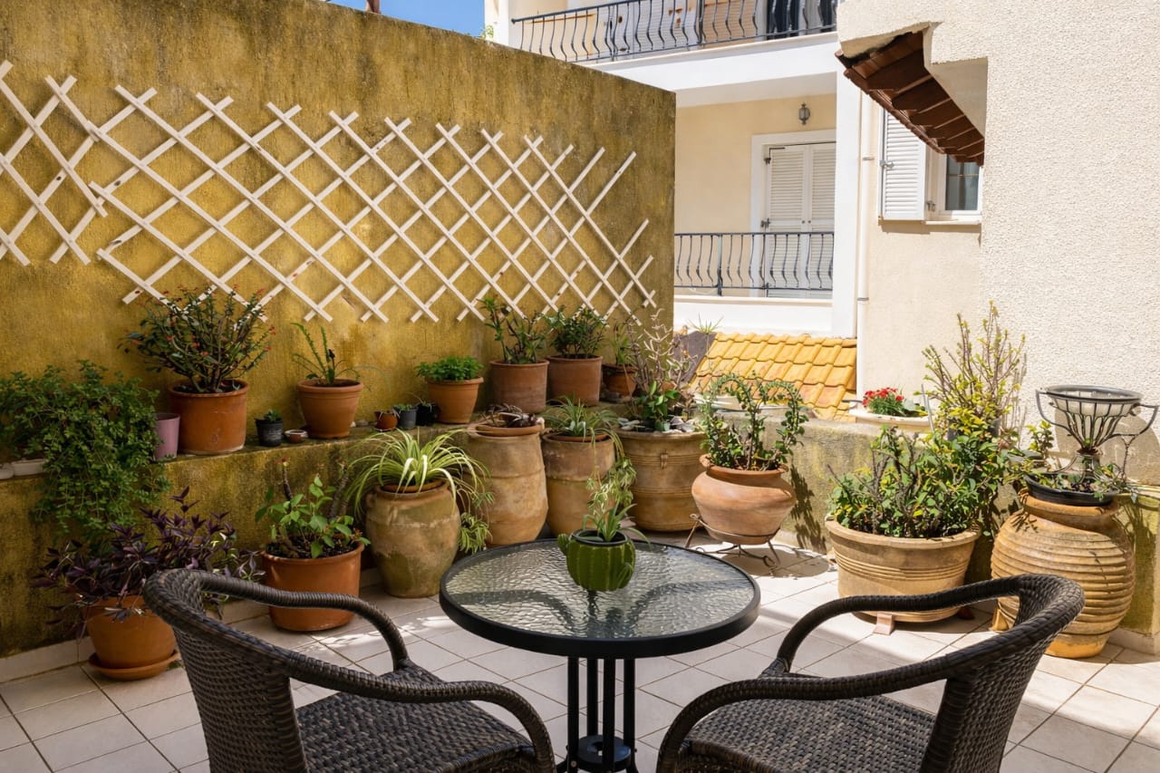 Enjoy a private balcony with open views, a charming patio surrounded by plants, and a BBQ area for easy outdoor dining.