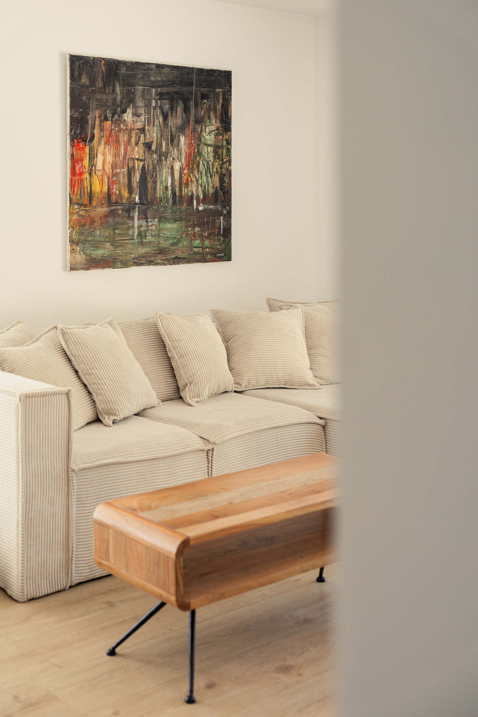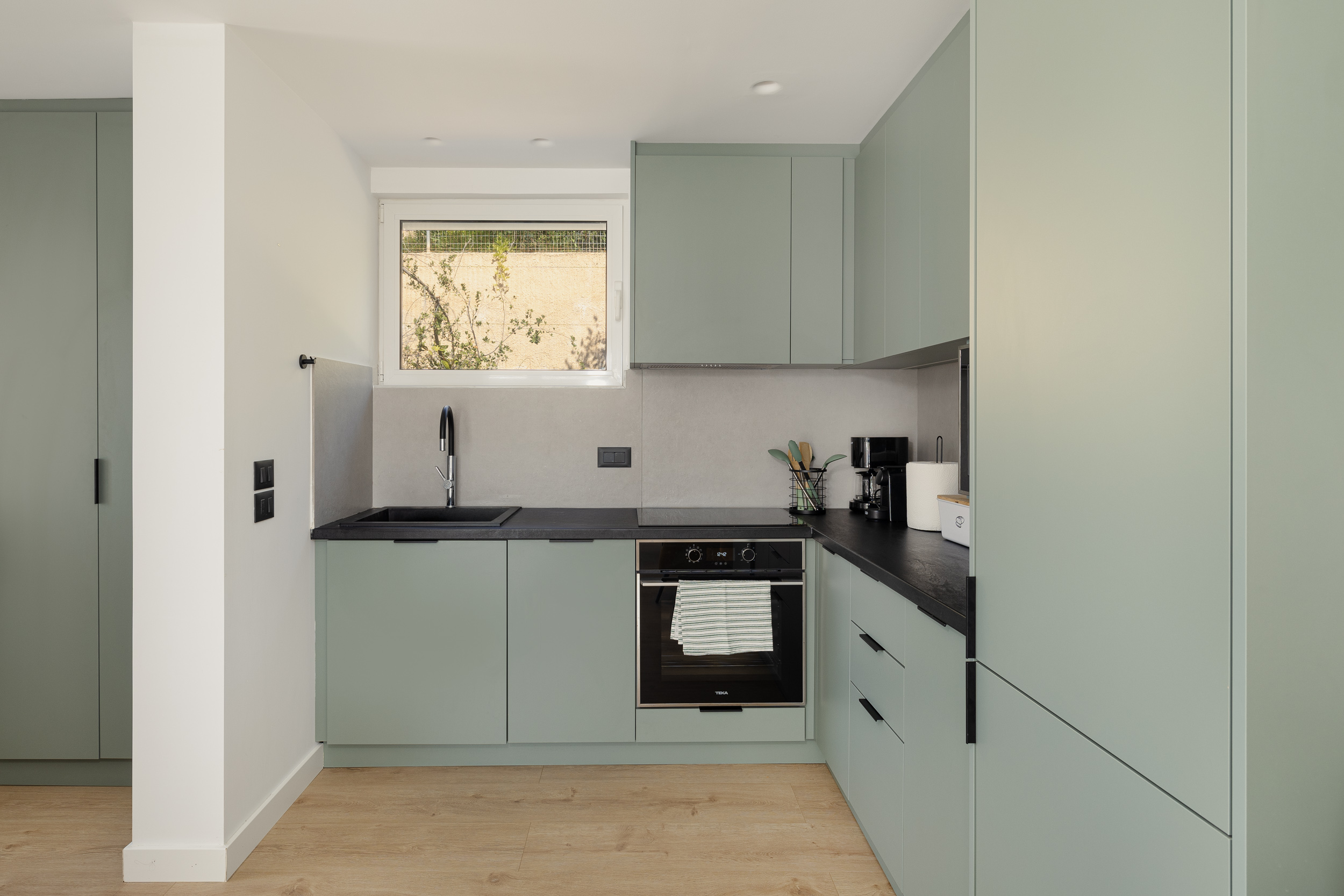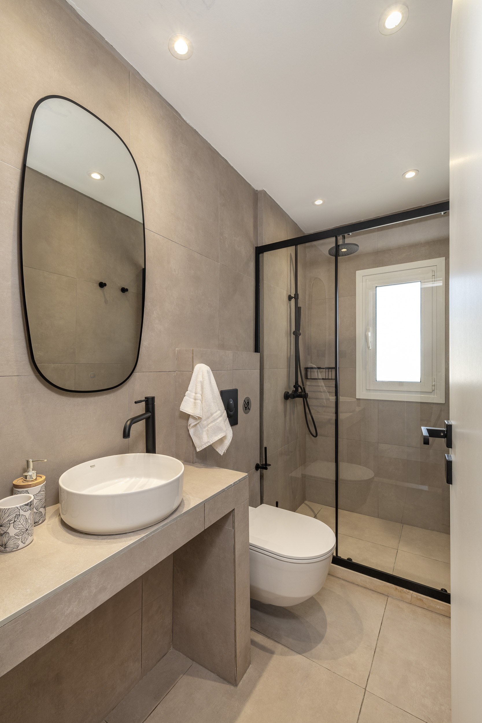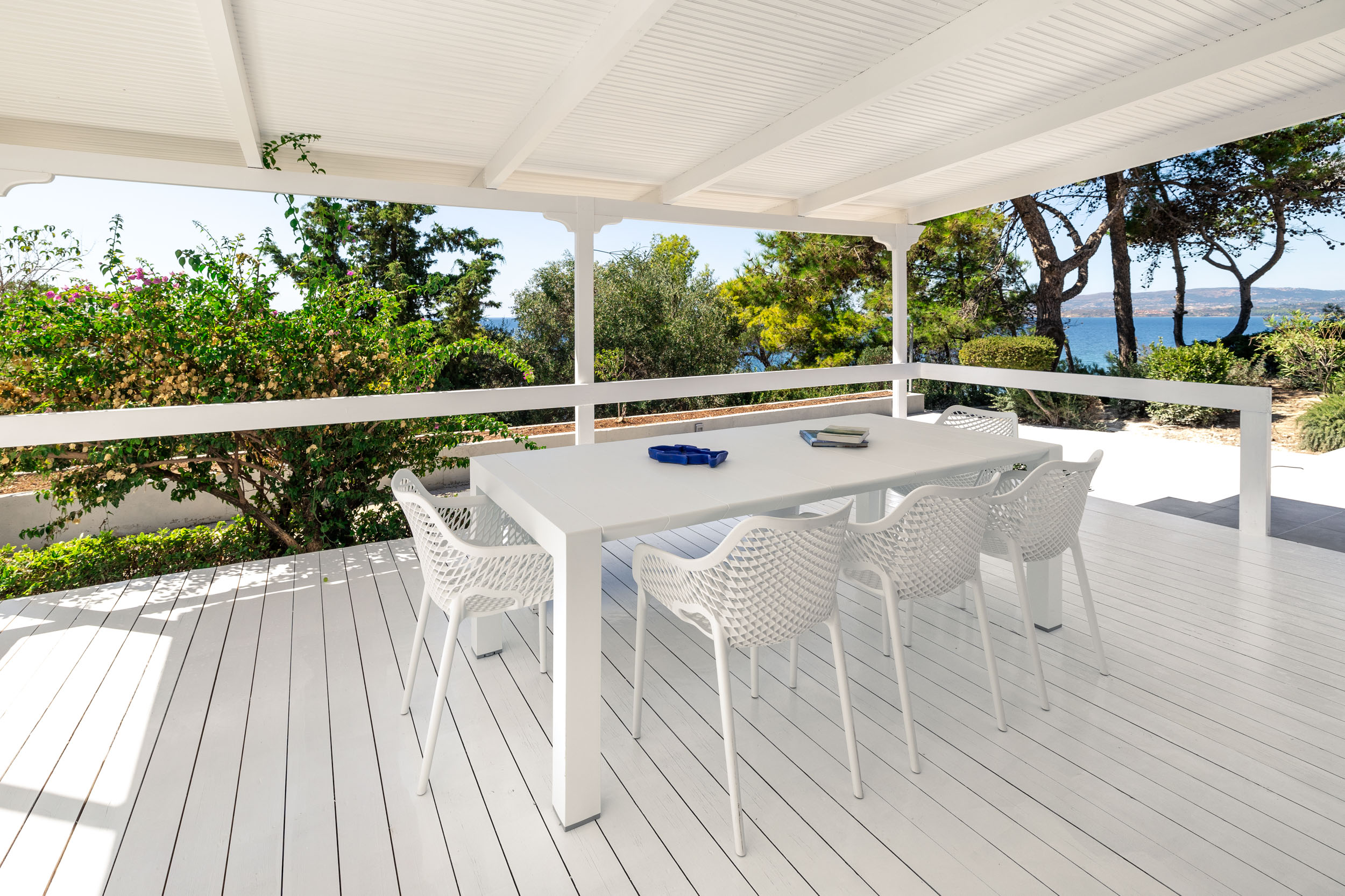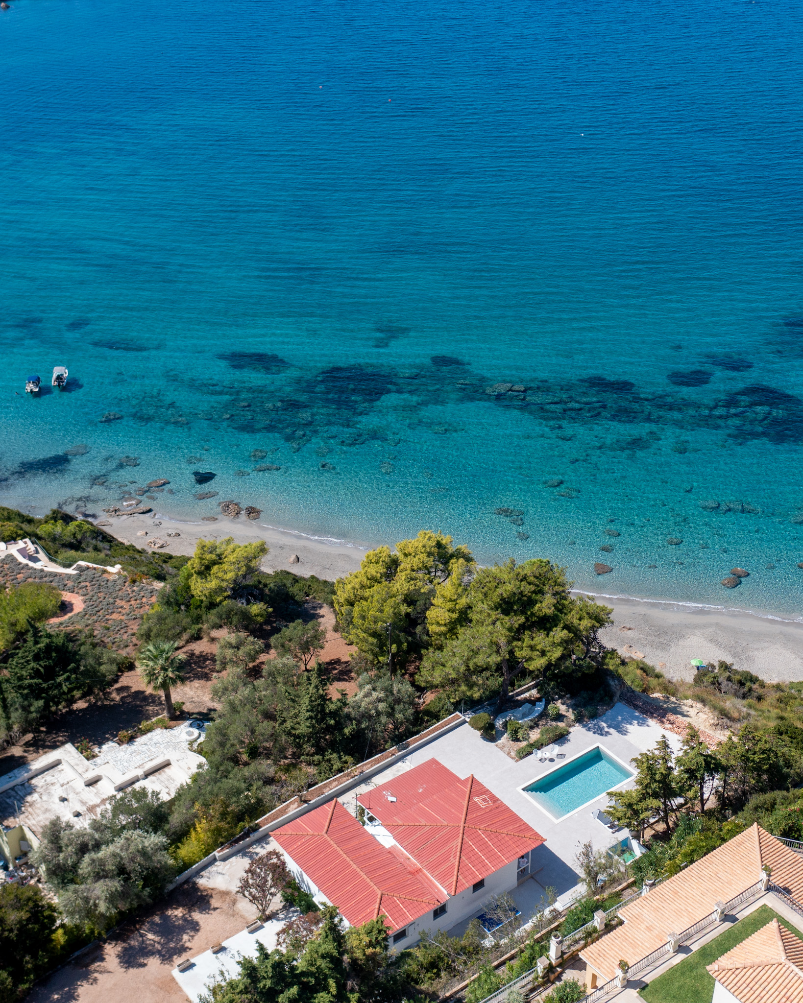 Villa Olyan in Minies, Kefalonia is a serene coastal escape perched above the turquoise waters of the Ionian Sea, designed with a modern, minimalist aesthetic that blends comfort and elegance. The villa features an open-plan living area filled with natural light, where large sliding doors open to a terrace that frames breathtaking sea views. The stylish kitchen is fully equipped with modern appliances and a wooden dining table, creating the perfect space for shared meals and relaxed gatherings.